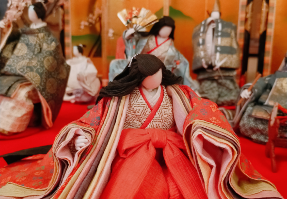 衣装はもちろん、お顔から指先まで、すべて和紙で作られた物語仕立てのお雛様を2階大広間に展示しま...